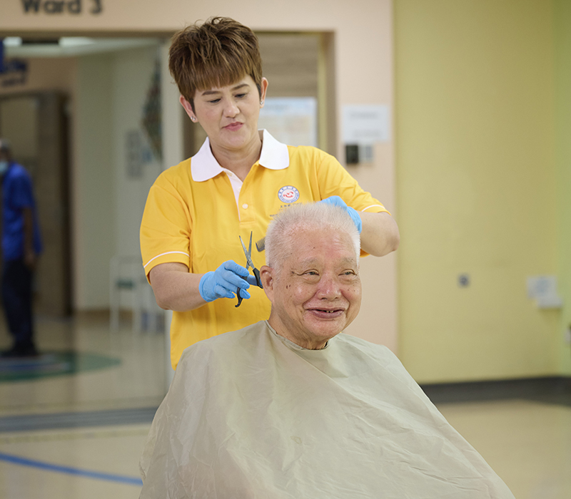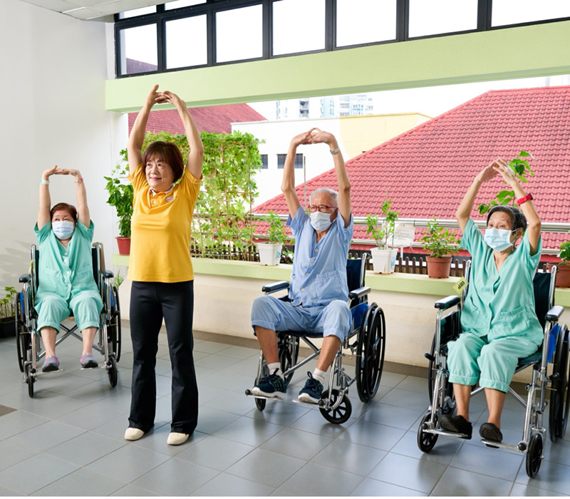 Patients participate in regularly scheduled activities facilitated and supported by our volunteers. Activities such as Seated Taichi and Pet Therapy are some of the psycho-social activities for patients to engage in cognitively stimulating activities.